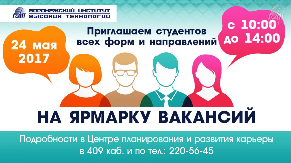 Воронежский институт высоких технологий приглашает студентов очной и заочной формы обучения принять участие в традиционной весенней ярмарке вакансий.
